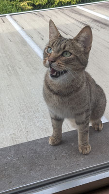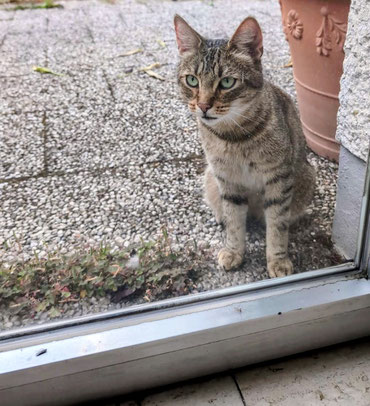 Sie hält sich stundenlang im Garten der Melderin auf und will ins Haus. Sie miaut ständig (auch nachts) und scheint den Kontakt zu suchen. Sie ist sehr zutraulich.