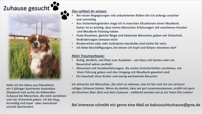 ☎️ Nähere Infos und Interessenten melden sich bitte unter: balousuchtzuhause@gmx.de