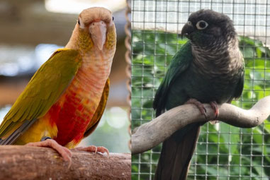 Diese sechs Molinasittiche (5 mit rotem Bauch und 1 mit grünem Bauch) sind am Abend des 29.08.2025 in Langenfeld-Immigrath entflogen.